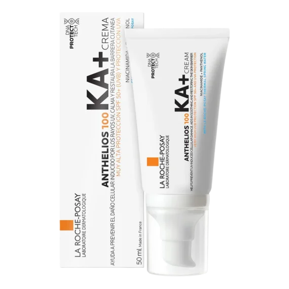 La Anthelios 100 KA Crema FPS 50 ofrece una defensa excepcional contra los daños solares. Formulada especialmente para combatir los efectos nocivos de los rayos UV, esta crema no solo actúa como un protector solar, sino que también ayuda a prevenir el daño celular inducido por la exposición diaria al sol. Con una muy alta protección solar de FPS 50, su uso frecuente garantiza que tu piel se mantenga saludable y radiante.